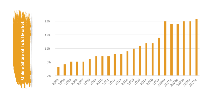 - Snabbare omställning från landbaserat till online till följd av pandemin